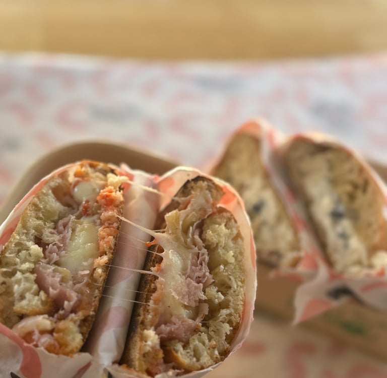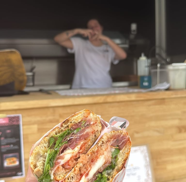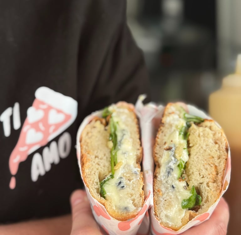 Lors des événements, Ti Amo sort sa carte spéciale : les panuozzos, notre version street-food du sandwich façon pizza, à savourer en toute convivialité !